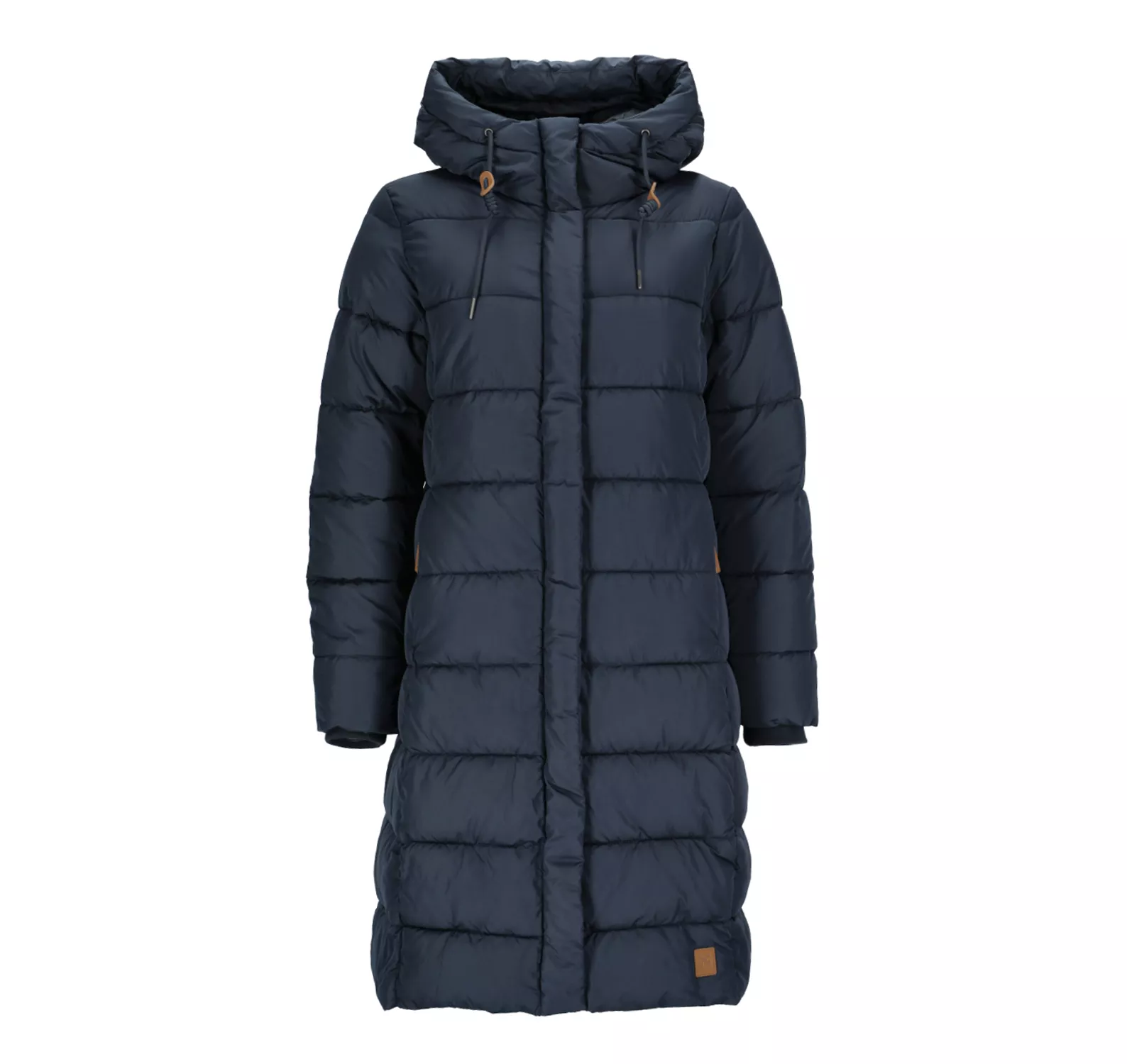 Stockholm coat w jacka från X-Trail. Lång, varm jacka med en huva med en justerbar dragsko. Trendig design med muddar vid ärmsluten.